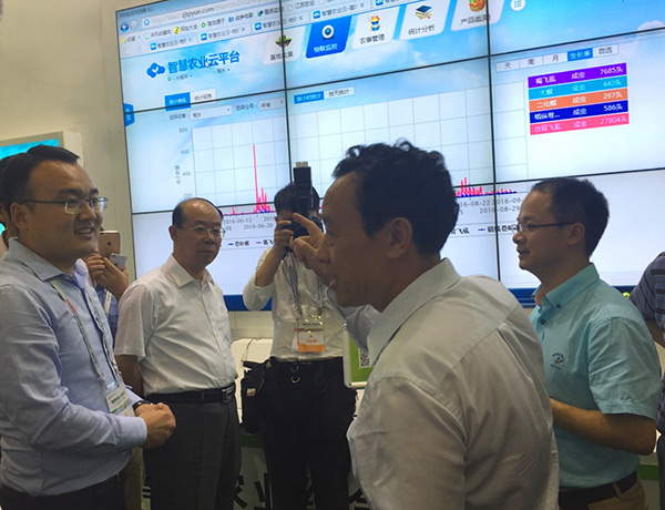 圖為:屈冬玉副部長針對(duì)物聯(lián)網(wǎng)應(yīng)用進(jìn)行現(xiàn)場(chǎng)指導(dǎo)