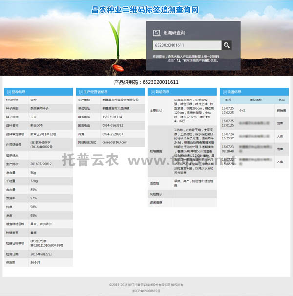托普農(nóng)作物種子二維碼標簽追溯系統(tǒng)web界面及手機APP: