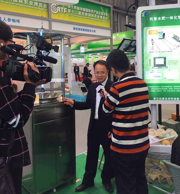 第十四屆中國國際農產品交易會正在昆明舉行,央視七套《聚焦三農》派出多路記者在現場采訪和體驗。在科技展區浙江托普云農科技股份有限公司(以下簡稱“托普云農”)的“無線農業氣象監測站”吸引了記者的目光。