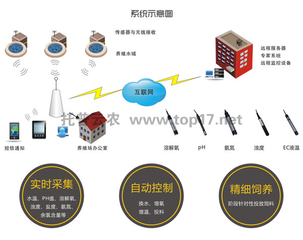 水產(chǎn)養(yǎng)殖監(jiān)控系統(tǒng)是一套物聯(lián)網(wǎng)為核心,貫穿整個養(yǎng)殖過程,科技化、智能化、便捷性、低成本、高收益的水產(chǎn)養(yǎng)殖系統(tǒng),它的應(yīng)用標志著經(jīng)驗養(yǎng)殖的方式正在逐漸成為歷史,科技養(yǎng)殖的時代開始到來。托普云農(nóng)水產(chǎn)養(yǎng)殖監(jiān)控系統(tǒng)利用各種水質(zhì)傳感器測驗PH、溶解氧、溫度等重要的水質(zhì)數(shù)據(jù),并及時作出調(diào)整,使水質(zhì)達到最佳狀態(tài)。