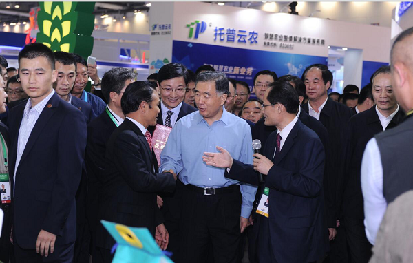 會前,汪洋參觀了首屆新農民新技術創業創新博覽會,詳細了解農業物聯網、休閑農業、電子商務等新技術新業態發展情況,并與創業新農民進行了交流。