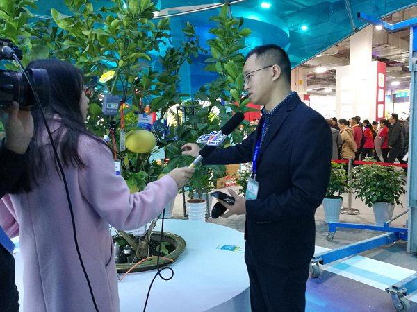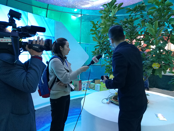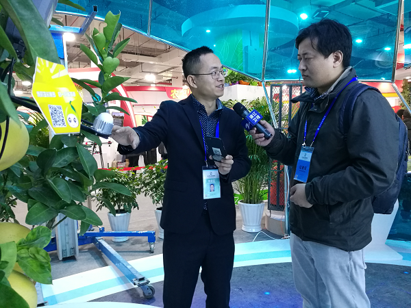 “在這棵文旦樹上,我們安裝了無線葉面溫度傳感器、光照強度傳感器、果實膨大傳感器。通過這些傳感器采集傳輸的數據,我們就能知道整個樹的生長秘密”。展會現場,現代農業與信息化的互融發展,吸引浙江衛視、杭州電視臺、蕭山日報、舟山電視臺、金華電視臺等記者前來采訪。