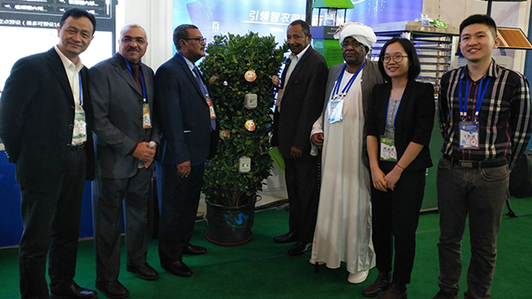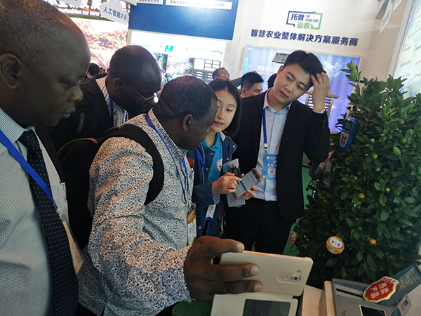 農(nóng)業(yè)信息化是農(nóng)業(yè)現(xiàn)代化的標(biāo)志,為此海南集中優(yōu)勢(shì)積極開(kāi)展海南特色農(nóng)產(chǎn)品的電商促銷(xiāo)、農(nóng)產(chǎn)品質(zhì)量安全追溯以及農(nóng)業(yè)的信息化服務(wù)。在海南,瓜果種類資源豐富多樣。為提升現(xiàn)場(chǎng)參展人員的農(nóng)產(chǎn)品質(zhì)量安全溯源體驗(yàn),托普云農(nóng)還將橘樹(shù)搬進(jìn)展區(qū)。分布在展區(qū)的兩棵橘子樹(shù),更是獲得國(guó)外友人的好奇與關(guān)注。通過(guò)手機(jī)掃描二維碼,便能查看到橘子的光照溫度、土壤溫濕度等生長(zhǎng)環(huán)境信息。如此智能化的操作,讓國(guó)際友人贊嘆不已。