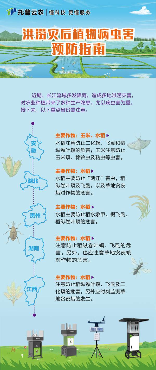災(zāi)后巡檢雖已結(jié)束,但災(zāi)后生產(chǎn)還需長(zhǎng)期防范,除了借助我們托普云農(nóng)的智能裝備,大家還需要注意日常的病蟲(chóng)害預(yù)防。我們特地整理了一份《病蟲(chóng)害預(yù)防指南》,對(duì)各省重點(diǎn)蟲(chóng)害做了介紹,希望對(duì)大家有所幫助!