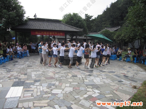 早上8:30分由三個團隊帶領著公司全體員工浩浩蕩蕩的向目的地----杭州大清谷進軍,約在早上9點整全體員工安全到達目的地。9.10整活動正式拉開序幕,第一項是領導講話,接下來是全體員工集體亮相,為了加強員工之前的相互了解和感情交流,主持人可是費了不少心思,(把全體人員按結婚與否分為兩組席地而坐)。