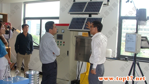 圖為:固定式無線農業氣象綜合監測站技術人員現場演示并進行詳細講解