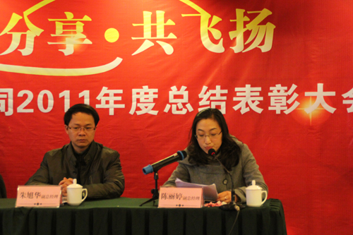 總結會議由行政辦公室主任主持,報告會議為一全天,上午由公司總經理、各分管副總進行2011年度公司整體發展的總結說明。