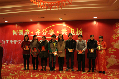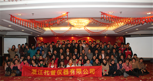 浙江托普儀器有限公司2011年年度總結表彰大會于2012年1月15日在銘泰大酒店七樓會議室圓滿召開。此次會議的主題是“同創造 齊分享 共飛揚”,托普上下110余人齊聚一堂,共同回顧2011年托普儀器的點點滴滴,并對2012年各項工作進行展望。