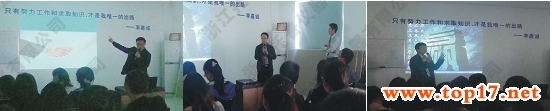 培訓(xùn)內(nèi)容共分為五大部分:問心—心態(tài)—良好的工作習(xí)慣—堅守信念—終生法則。羅老師針對以上幾點展開了深入的講解,使我們認識到自己是為什么而工作,我們要選擇什么,選擇之后要抱著怎樣一個心態(tài)去工作,并送給托普公司所有員工五條終生受用的法則:1.勤奮,讓你更優(yōu)秀;2.敬業(yè),讓你更受歡迎;3.責(zé)任,讓你工作更出色;4.忠誠,讓你更受器重;5.誠信,讓生命更有意義。