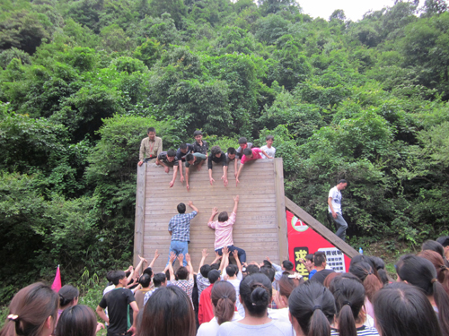 本次活動在杭州白龍潭訓練拓展基地教練的協助下順利的展開,全程共有一百多個托普人參加。活動中共有“雷區取水”、“極速60秒”、“挑戰五分鐘”、“畢業墻”四個項目,分別于當日上午和下午時間分別展開。為更好的體現團隊協作能力,基地教練將人員劃分為四個團隊,分別是:神龍隊、工兵隊、狼牙隊、亮劍隊。四大團隊揮舞旗幟,高喊口號,托普戶外拓展訓練激烈展開。