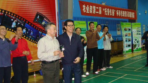 農業(yè)部黨組副書記、常務副部長、農業(yè)部機關羽毛球俱樂部名譽會長危朝安農業(yè)部農墾局李偉國局長、全國農技推廣中心夏敬源主任、托普儀器公司總經(jīng)理陳渝陽先生出席開幕式