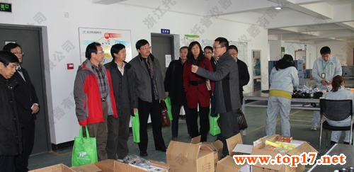 參觀期間,湯處長還在陳總經理的陪同下前去參觀了托普公司的樣品室、生產車間、物流部等部門。