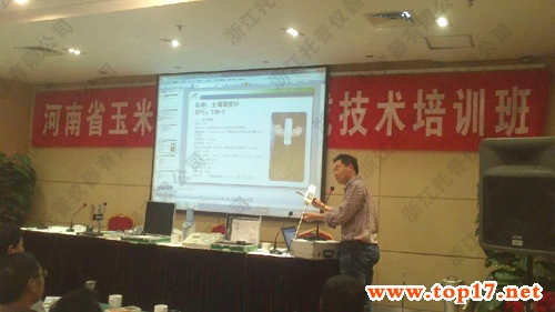2013年河南省農機推廣站承擔了國家財政部下達的農業財政資金項目“河南省農機農藝集成技術示范與應用”,為做好項目實施工作,5月10日,河南省農業機械技術推廣站在鄭州舉辦了“河南省農機農藝集成技術培訓班”,來自河南省農機推廣站、沁陽市農機局、民權縣農機局的領導和技術人員以及沁陽市、民權縣示范基地的農機專業合作社代表、種植大戶共70余人參加了此次培訓班。浙江托普儀器有限公司作為河南省農業機械技術推廣站的儀器設備供應商參加了此次培訓活動。
