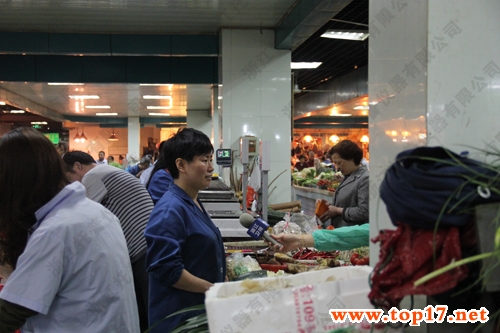 菜場攤主先進儀器測農殘,浙江衛視來采訪