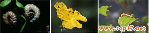 圖為:啃食植株的蠐螬、瑩蟲(chóng)、毛毛蟲(chóng)