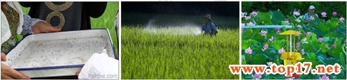 圖為:捉蟲(chóng)、噴藥、殺蟲(chóng)燈殺蟲(chóng)