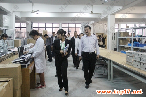 圖為:考察團視察托普儀器生產基地
