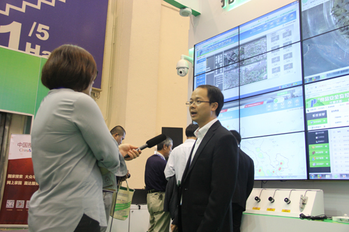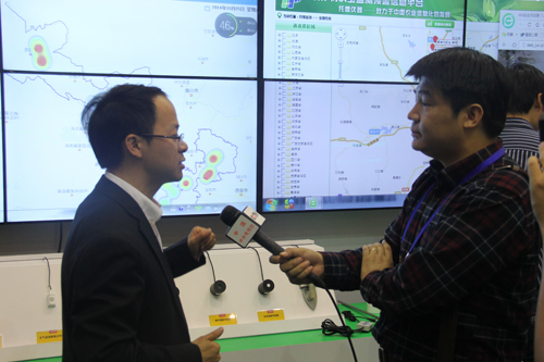 走近展臺,巨幅高清LED顯示屏吸引著眾人的視線,通過該顯示屏我們可以清楚的了解到田間氣象環境情況及作物長勢等情況,如:墑情、旱情、風速、風向、光照強度、植株病蟲害等信息。系統將各傳感器采集來的信息進行細致分析,按照管理員設定的各個參數上下限進行自動控制。例如:作物缺水,系統可自動打開噴滴灌裝置滿足作物需水要求。不僅如此,系統還可對作物信息進行溯源,全程監管農產品質量安全,使消費者輕輕松松吃到放“心菜”。