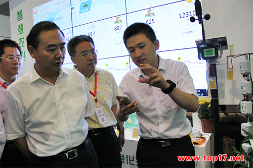 會議期間,安徽省農業委員會孫正東主任蒞臨托普云農農業物聯網展區,并細致觀摩了托普云農所展出的大田“四情”監控系統、設施農業監控系統、土壤墑情監控系統等多種農業物聯網綜合服務平臺,以及與之相關的多種儀器和智能硬件設備。在參觀過程之中,孫正東主任詳細詢問了大田“四情”監控系統、遠程傳輸智能蟲情測報燈、植物本體傳感器、固定式無線農業氣象綜合監測站等系統設備。陳曦經理為其一一進行介紹。