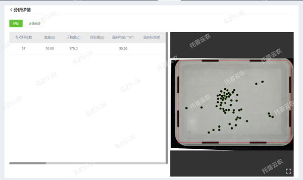 水稻考種分析系統(tǒng)也叫水稻考種分析儀,水稻自動考種系統(tǒng),可以測量水稻、小麥、玉米、油菜、豆類、花生、芝麻、高粱等脫粒后的各種作物種子,快速獲取種子的數(shù)量、千粒重與平均粒型(包括長、寬、長寬比、周長、面積)等信息。主要應(yīng)用于育種過程中,對育種材料千粒重及粒型參數(shù)的快速、準確提取,提高育種效率,為育種材料的篩選提供依據(jù)。